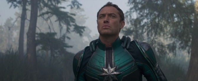 Vemos al Dr. Walter Lawson de Jude Law dándole a Carol algunos consejos aquí y allá en el trailer. Pero lo más importante es que lo vemos usando ese uniforme de Kree. Así que estoy dispuesto a apostar que oímos su nombre de Kree en algún momento, y así fue. maldita sea mejor que sea Mar-Vell.