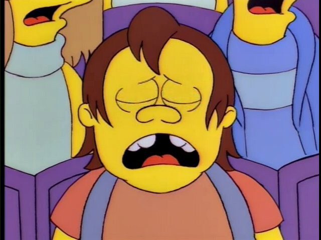 El hecho de que los personajes de Los Simpson rara vez miren hacia adelante es una de esas cosas de las que uno no se da cuenta hasta que alguien lo señala . Pero una vez que lo ves, es casi imposible dejar de pensar en ello. Primero, está el horror absoluto de esa nariz plana y bulbosa. Luego, la colocación antinatural de las orejas que aparentemente se sientan en la mitad frontal de la cabeza. Finalmente, los muertos miran en esos ojos perfectamente simétricos mientras miran profundamente en tu alma. Estas caras tienen todas las características de, como el tuit anterior dice, una imagen «maldita».